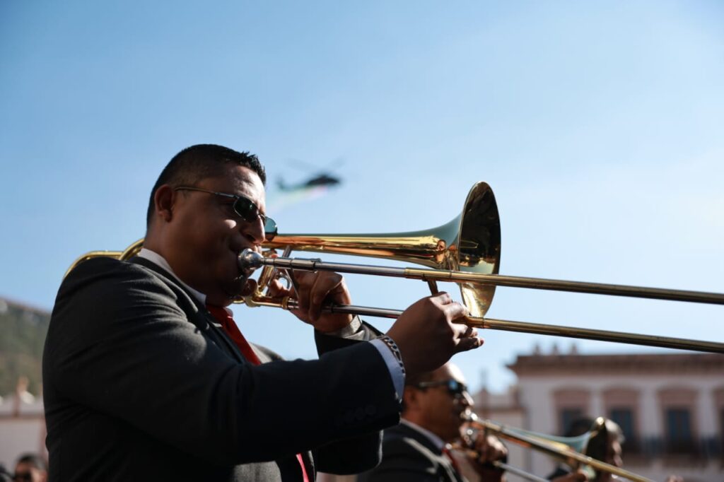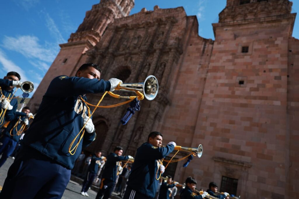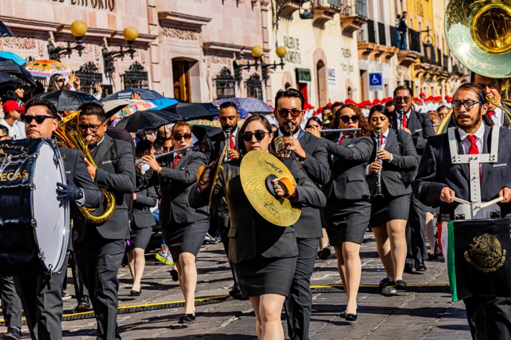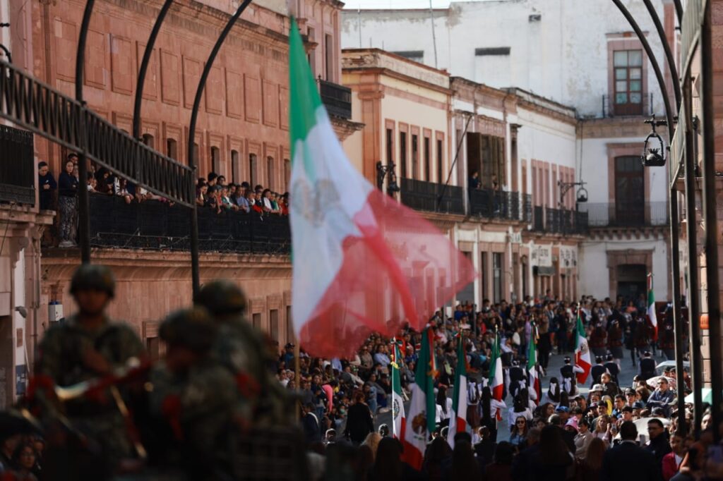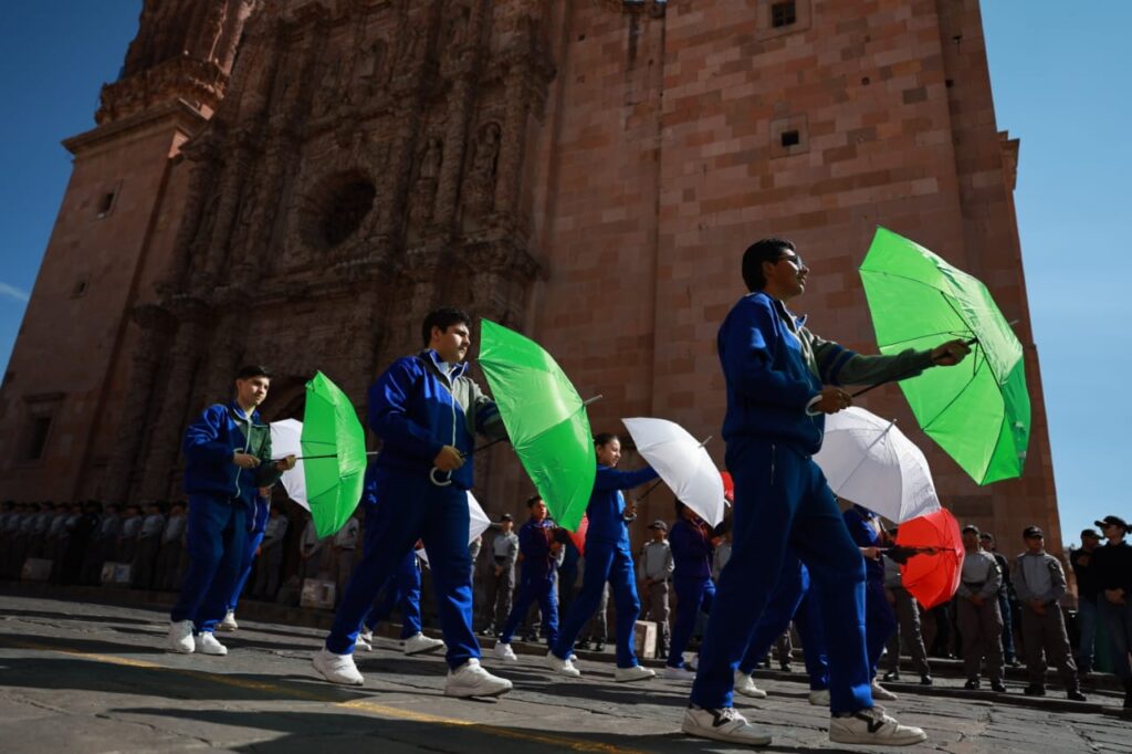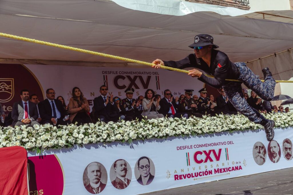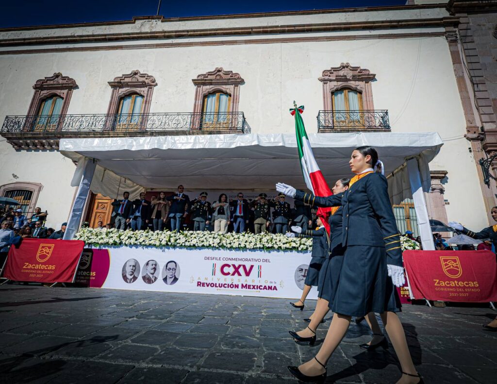 Zacatecas,(20-11-2025).-En el marco del 115 aniversario del inicio de la Revolución Mexicana, el Gobernador David Monreal Ávila presenció el desfile cívico-deportivo, en el que participaron más de 2 mil personas entre estudiantes, docentes, autoridades militares, corporaciones de seguridad pública y agrupamientos civiles.