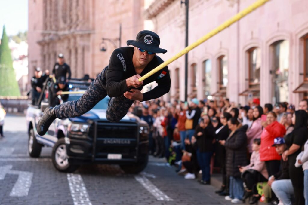 Se hicieron maniobras de reacción táctica por parte de la Fuerza de Reacción Inmediata Zacatecas, y una simulación aérea de rescate con la aeronave Black Hawk UH-60, exhibiciones ecuestres de la unidad montada de la Policía Estatal, y la participación de binomios canófilos en tareas de búsqueda, obediencia y detección.