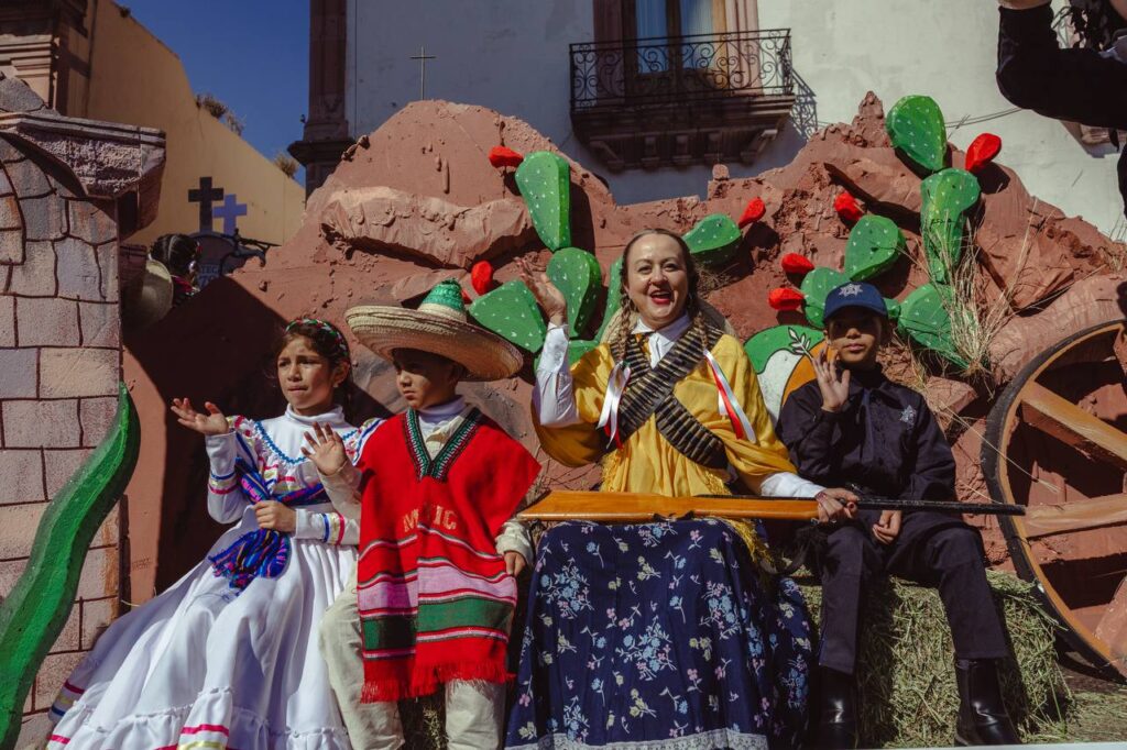 Entre los contingentes se incluyeron representaciones de “Adelitas” como símbolo del papel de la mujer en la Revolución, así como una réplica a escala del avión “Sonora”, primer aeroplano que combatió en la historia militar mexicana durante la Revolución de 1914.