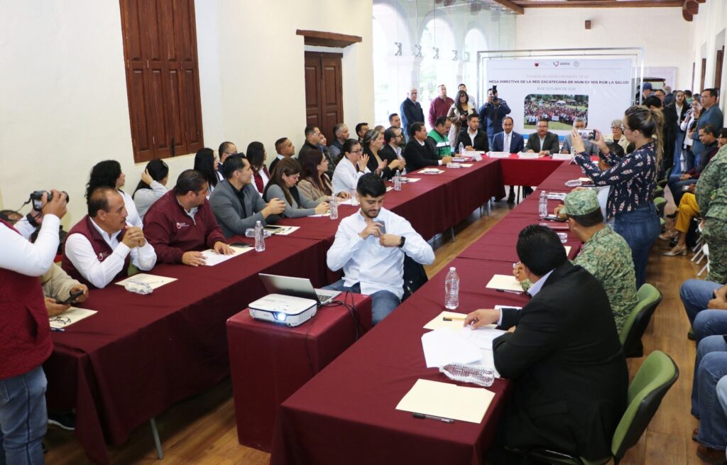 Guadalupe, Zac,(10-10-2025).-Con la visión municipalista que ha caracterizado a la administración estatal, encabezada por el Gobernador David Monreal Ávila, la cual tiene por objeto trabajar de manera conjunta con cada uno de los ayuntamientos en la entidad, se realizó la primera reunión ordinaria de la mesa directiva de la Red Zacatecana de Municipios por la Salud (RZMS).