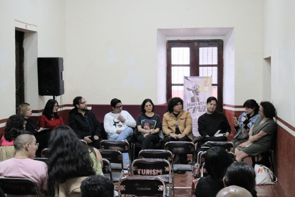 La jornada cerró con la mesa de diálogo “La influencia del cine en mi escritura”, en la que compartieron experiencias y procesos creativos los escritores y guionistas Brenda Rodríguez (Aguascalientes), Angélica Cortázar (San Luis Potosí) y Víctor Avelar (Zacatecas), quienes reflexionaron sobre la manera en que las imágenes cinematográficas se convierten en detonantes literarios.
