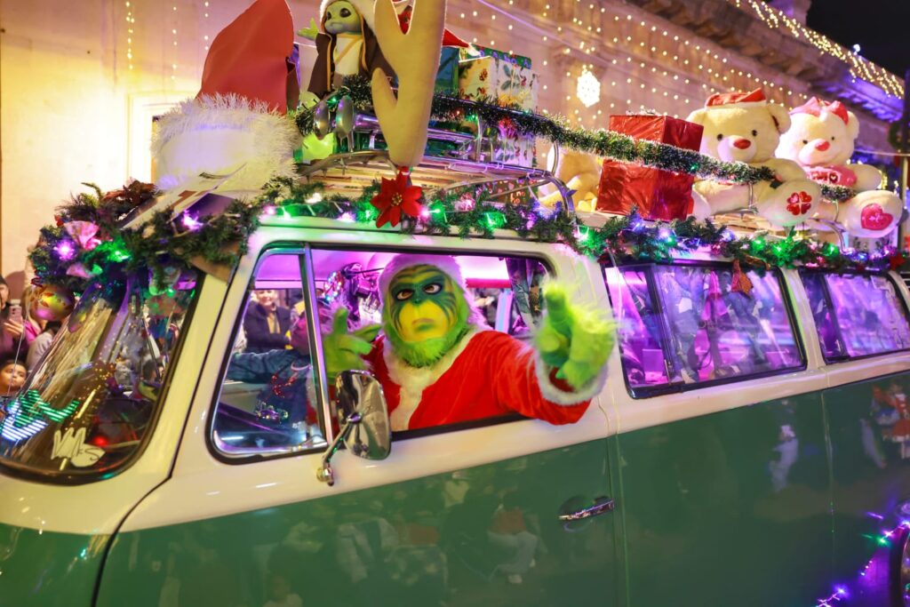Cada carro alegórico narró una historia navideña distinta, adornado con esferas brillantes, luces multicolores, árboles de Navidad, regalos gigantes y escenas invernales que despertaron sonrisas y aplausos, a lo largo del recorrido.