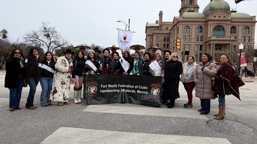 Como lo ha hecho cada año, la comunidad zacatecana se unió al desfile de apertura al 129 edición del Stock Show & Rodeo’s All Wester Parade, de esta ciudad vaquera, ondeando banderas mexicanas, estadounidenses y texanas, mientras recorrían, en hermosos ejemplares de caballos, carruajes y carrozas, el centro de Fort Worth, Texas acompañados por una diversidad de música interpretada por bandas, tamborazos y otros.