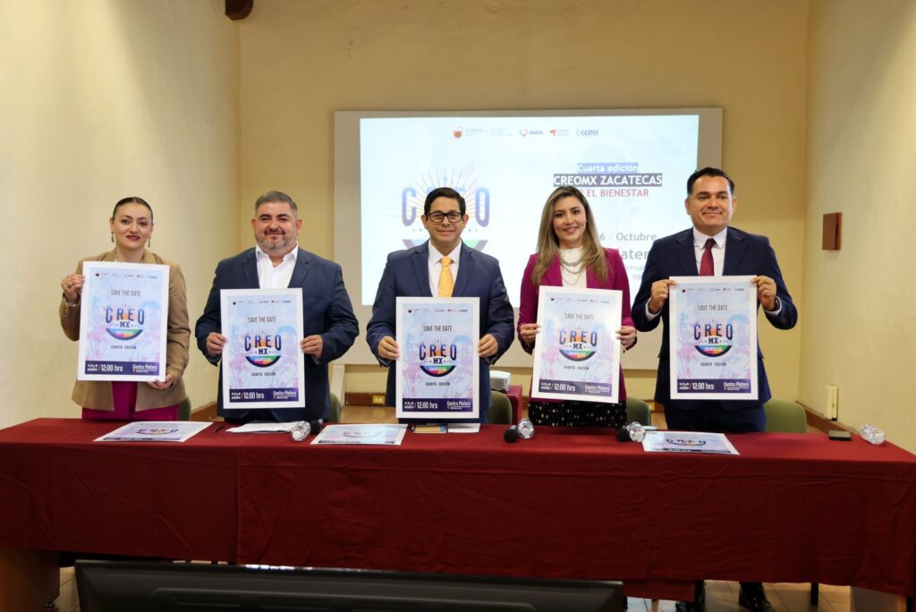 Guadalupe, Zac,(19-08-2025).- El Gobierno de Zacatecas, encabezado por David Monreal Ávila, anunció la realización de la cuarta edición de CREO MX 2025, que se llevará a cabo los días 14, 15 y 16 de octubre en el Centro Platero.