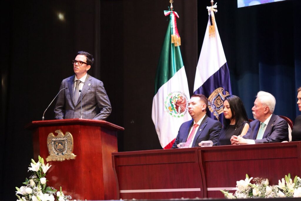 Ante la comunidad estudiantil y académica e invitados especiales, ofreció la mano firme y decidida del mandatario zacatecano para que la Universidad pueda sanear sus finanzas y así garantizar no solo su vida interna, sino que los jóvenes que aspiran a tener un lugar, lo tengan, y que todo el pueblo de Zacatecas, a través de una mejor situación financiera, pueda tener más estabilidad.