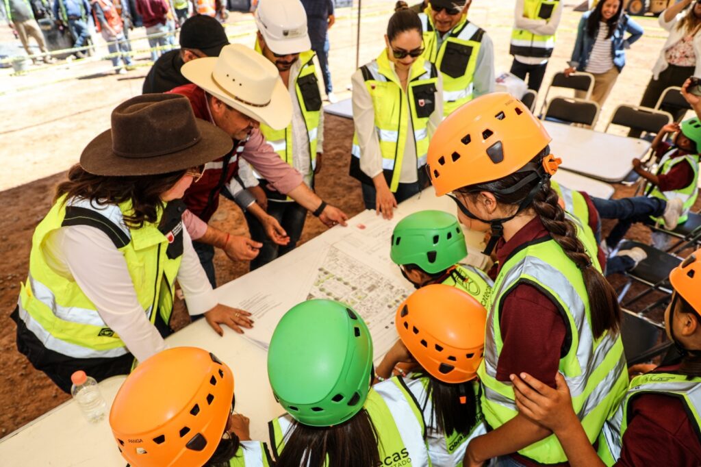 Guadalupe,Zac,(20-08-2025).-En un ambiente lleno de alegría, juegos y muchas sonrisas, la Presidenta Honorífica del Sistema Estatal para el Desarrollo Integral de la Familia (SEDIF), Sara Hernández Campa, compartió una mañana inolvidable con las niñas y los niños de la Casa Cuna «Plácido Domingo», quienes realizaron una visita muy especial a la obra en construcción de lo que será su próximo hogar: la nueva Casa Cuna «Semillitas».