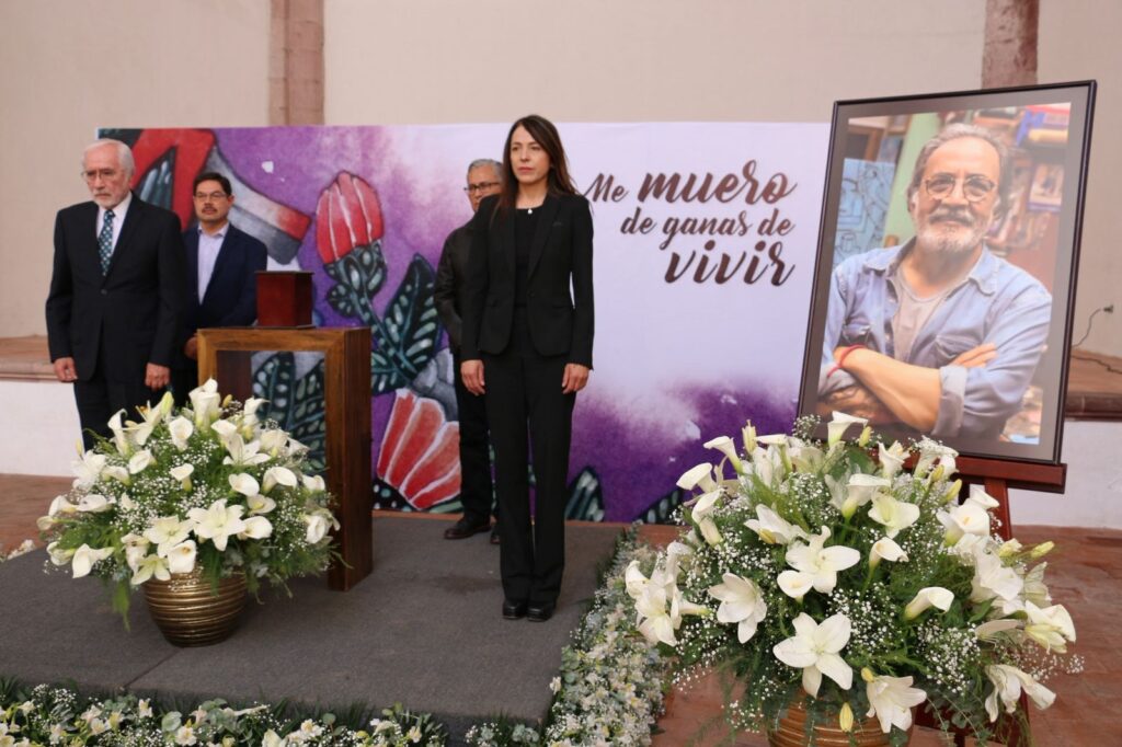 A nombre del mandatario estatal, dijo: “expresamos nuestro más sentido reconocimiento al maestro José Esteban, su legado seguirá vivo en las instituciones que fortaleció en las exposiciones que nos regaló y en la inspiración que sembró en artistas y generaciones enteras”.